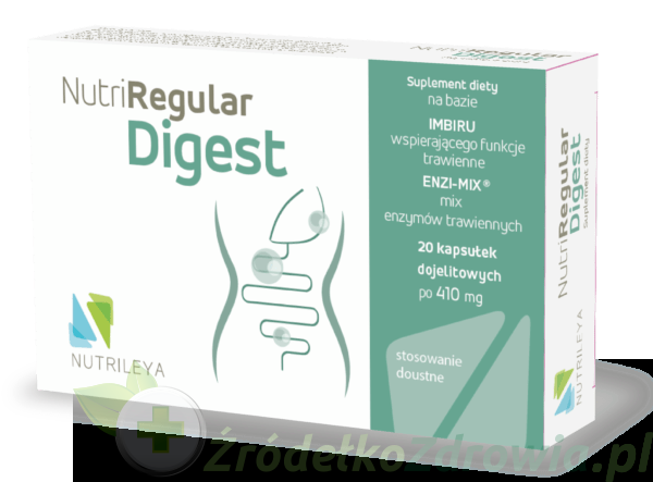 Jeśli borykasz się z problemami trawiennymi lub często odczuwasz wzdęcia i problemy z perystaltyką jelit to NutriRegular Digest na bazie imbiru z opatentowanym składnikiem ENZI-MIX® może być dla Ciebie idealnym rozwiązaniem.