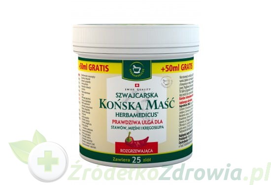 Maść jest wyjątkowo silna z uwagi na dużą zawartość substancji aktywnych i skład oparty na szwajcarskiej recepturze. To bardzo dobre rozwiązanie dla osób cierpiących na przewlekłe bóle, ponieważ daje szybką ulgę i intensywnie rozgrzewa, przywracając prawidłowe krążenie. Olejki eteryczne mają działanie odprężające i głęboko wnikają w skórę, regenerując ją i przywracając jej zdrowie. W skład końskiej maści rozgrzewającej wchodzą jedynie przebadane substancje najwyższej jakości.